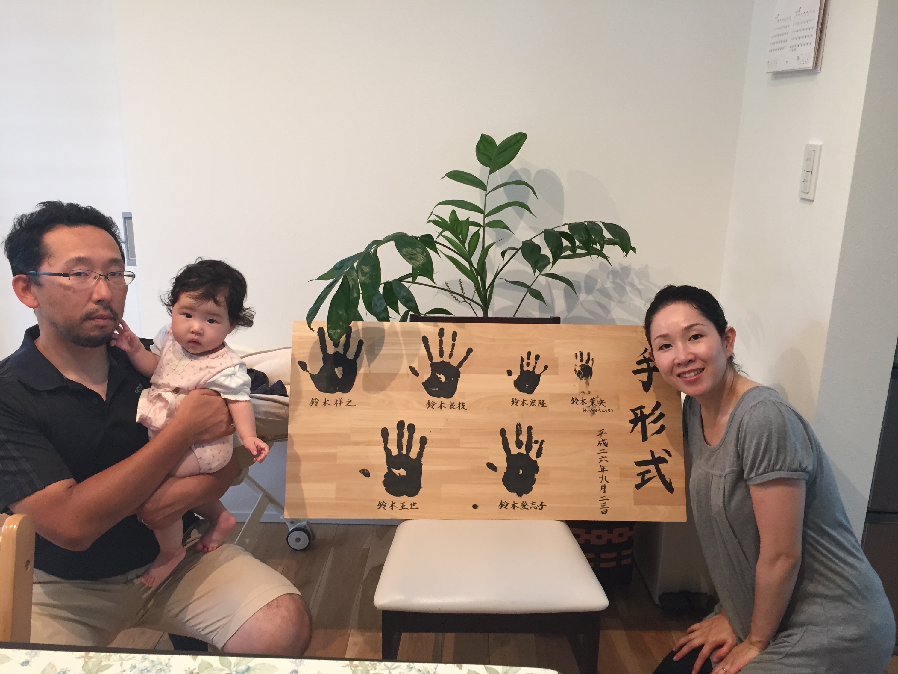 昨年の12月にお引渡しさせて頂きましたS様のお宅に6ヶ月点検にお伺いさせて頂きました。 お引渡し直前に産まれた娘さんの手形を押して、手形式が完成しました。